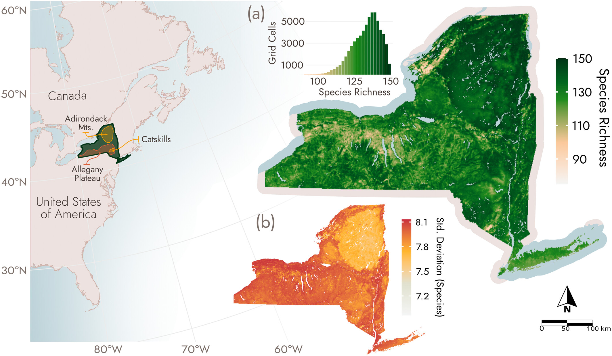 The local context required for implementing effective conservation actions is often missing from global analyses of bee diversity. Using records from the Empire State Native Pollinator Survey and GBIF, we modeled how bee species are distributed across the state of New York and what habitats may be of high conservation value. Read the paper in Conservation Science and Practice.