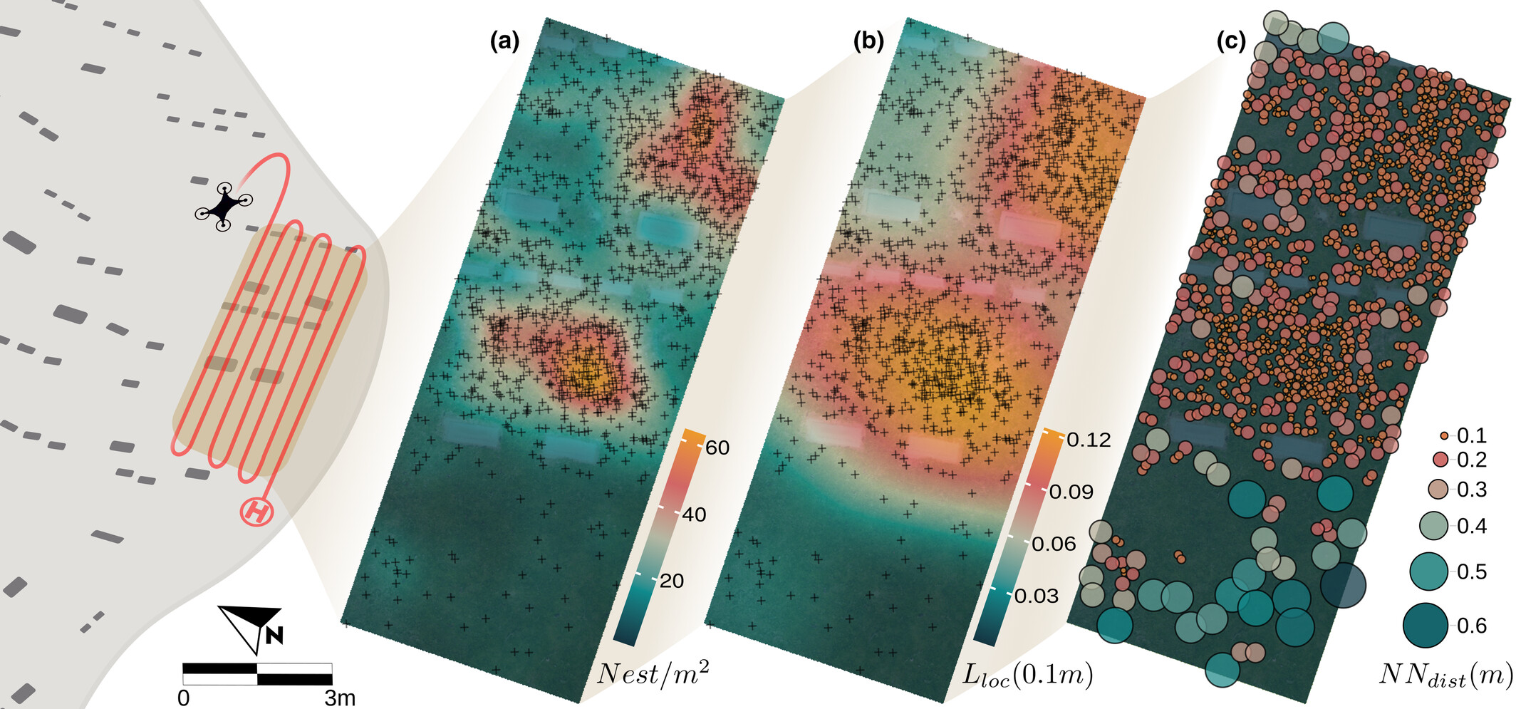 Traditional methods for monitoring solitary ground nesting bee aggregations is labor-intensive and provides limited, often coarse, metrics. We introduced a novel high throughput method for rapid, cost-effective monitoring using UAV-based imagery and computer vision. Journal of Applied Ecology.
